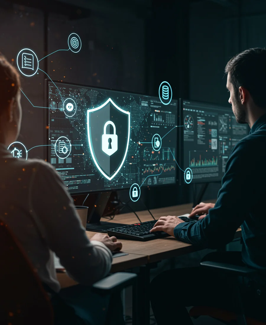 Cyber sigurnost štiti sisteme, mreže i podatke od neovlaštenog pristupa. Enkripcija, firewall-i i sistemi za detekciju prijetnji osiguravaju integritet i kontinuitet poslovanja.
